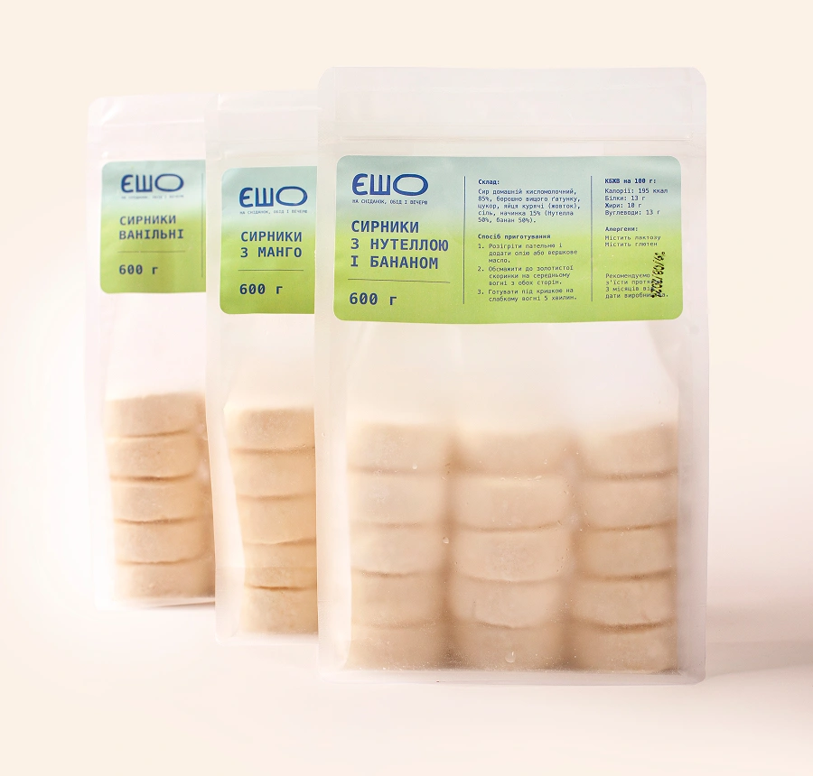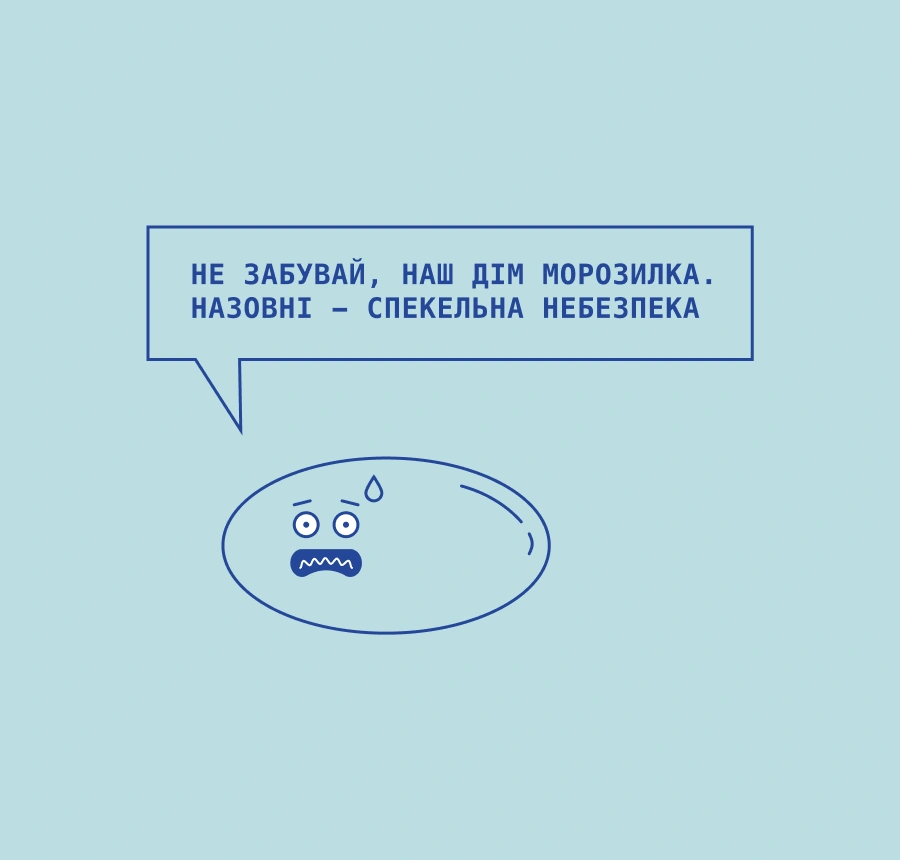 У центрі — персонажі, мешканці морозилки. Вони передають характер: трохи іронії, трохи турботи, і завжди те саме відчуття — вдома є щось смачненьке.